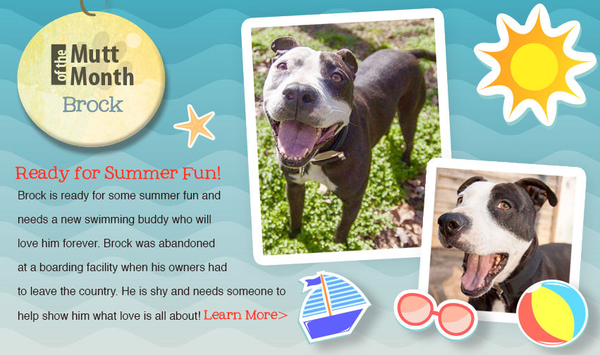 Brock is ready for some summer fun and needs a new swimming buddy who will love him forever. Brock was abandoned at a boarding facility when his owners had to leave the country. He is shy and needs someone to help show him what love is all about!